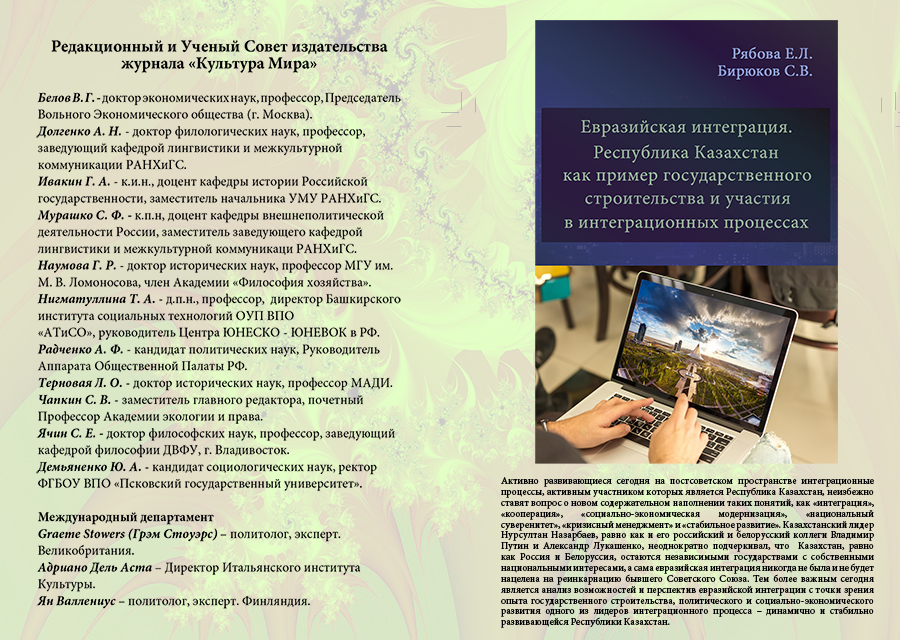 Редакционный и Ученый Совет издательства журнала «Культура Мира»
