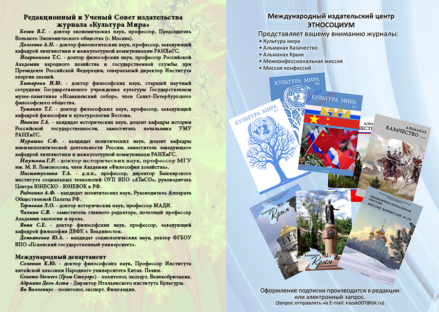Редакционный и Ученый Совет издательства журнала «Культура Мира»