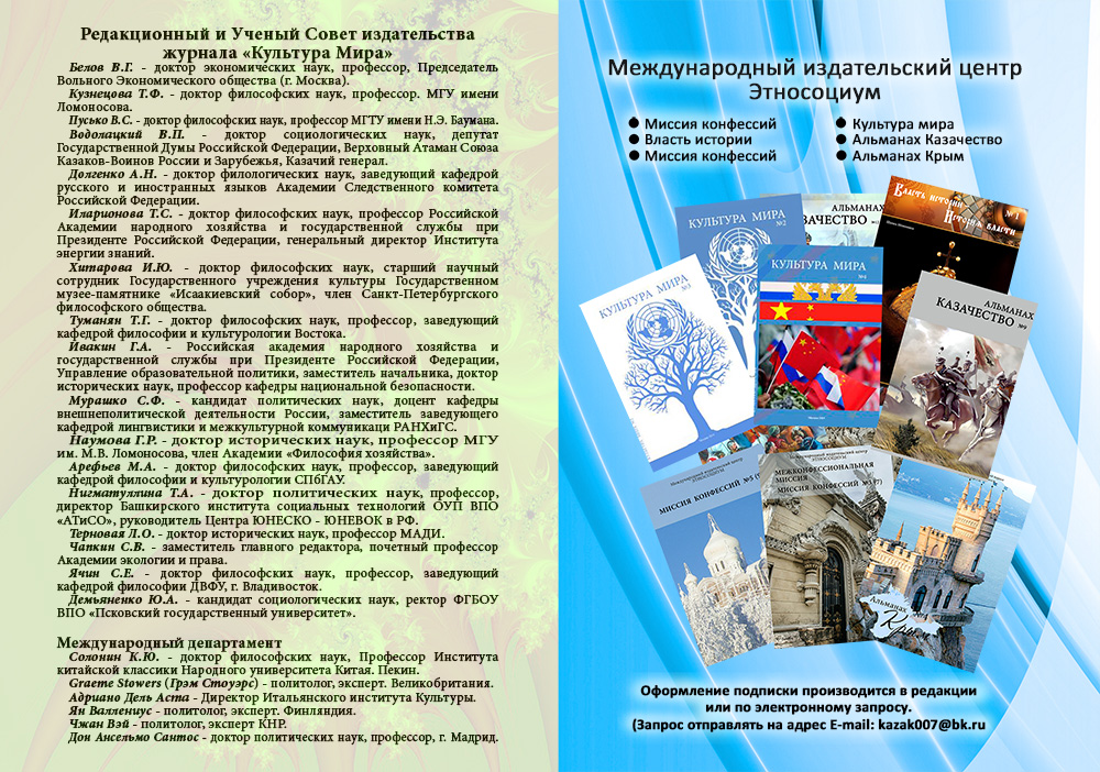 Редакционный и Ученый Совет издательства журнала «Культура Мира»